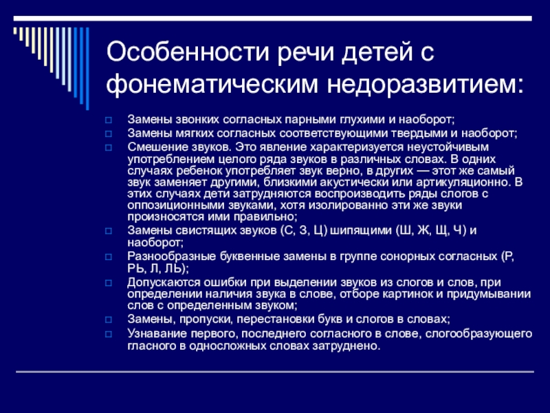 Слайд 4Особенности речи детей с фонематическим недоразвитием: