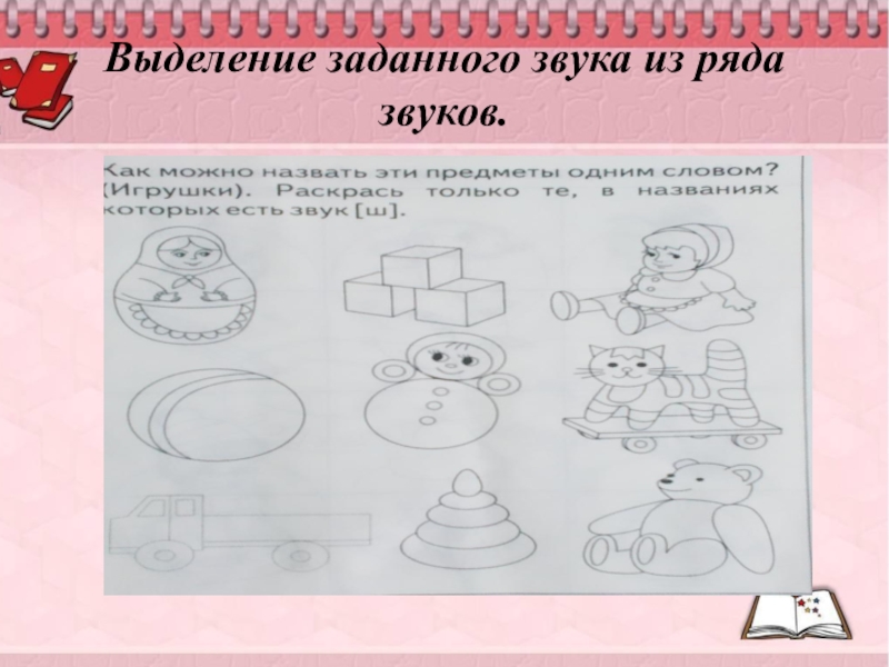 2. Фонематическое восприятие- умение различать близкие по звучанию звуки, выделять последовательно звуки в словах, определять место звука в слове.