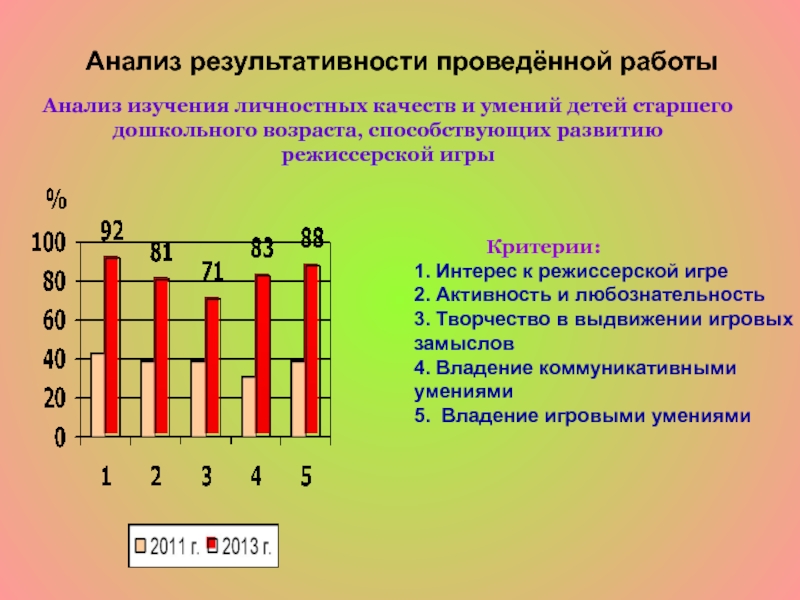 Анализ изучения личностных качеств и умений детей старшего дошкольного возраста, способствующих развитию режиссерской игры