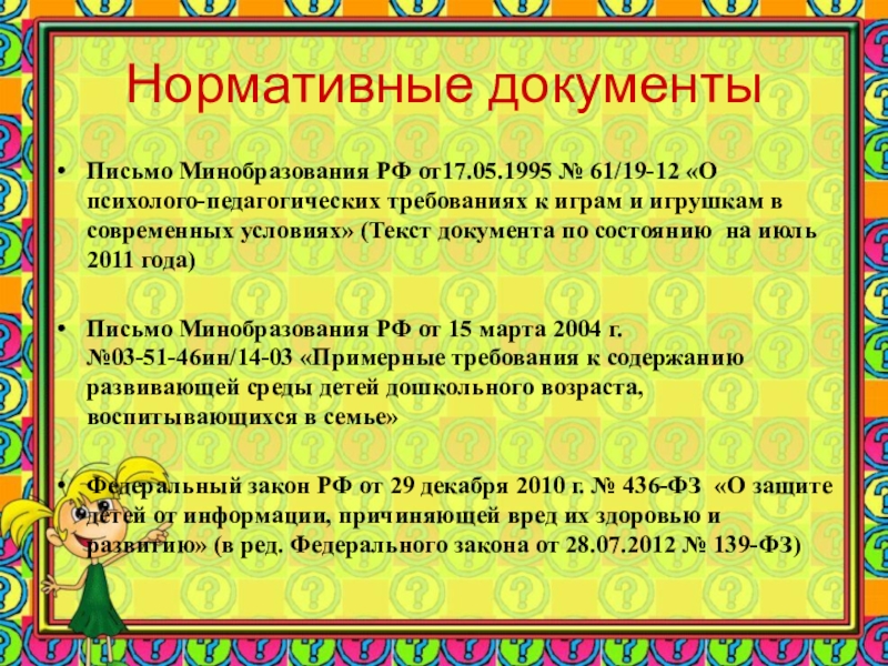 играм и игрушкам в современных условиях» (Текст документа по состоянию на июль 2011 года)