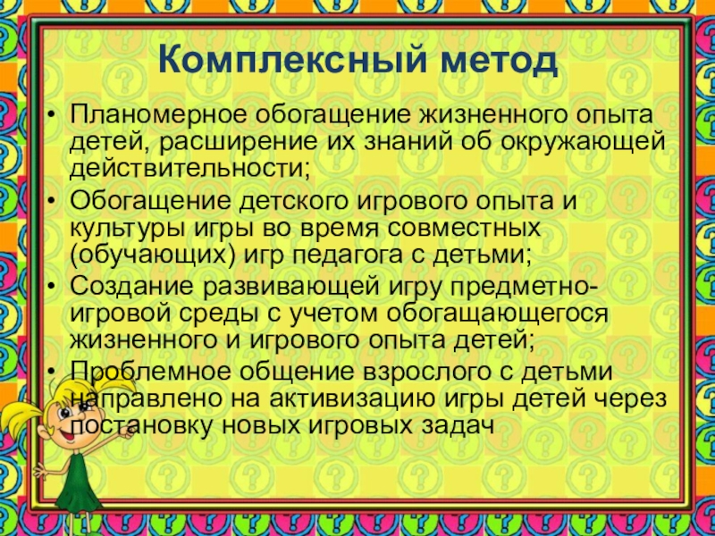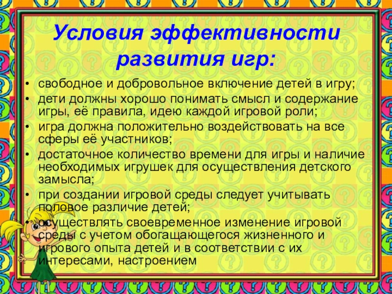 индивидуальный подход к воспитанию, обучению, развитию детей в игровой деятельности;
