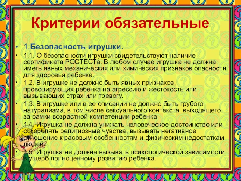 1.2. В игрушке не должно быть явных признаков, провоцирующих ребенка на агрессию и жестокость или вызывающих страх или тревогу.
