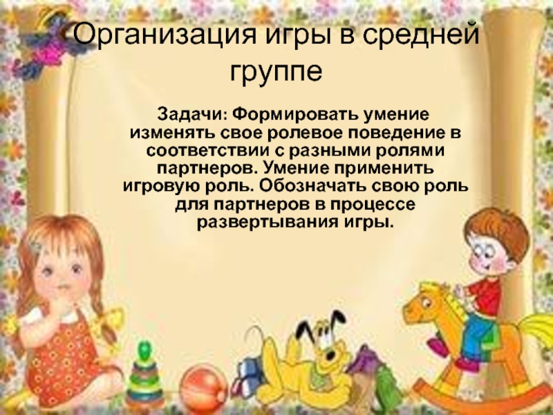 свое ролевое поведение в соответствии с разными ролями партнеров. Умение применить игровую роль. Обозначать свою роль для партнеров в процессе развертывания игры.