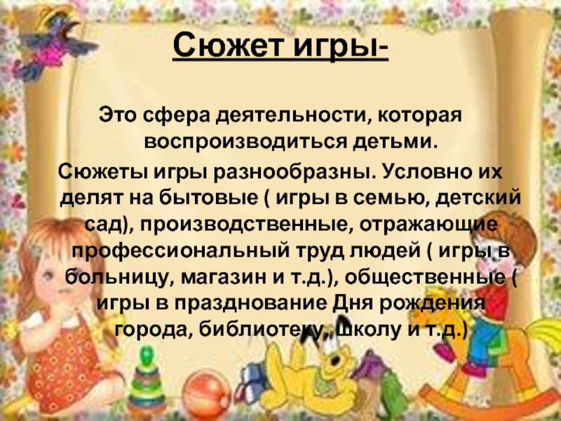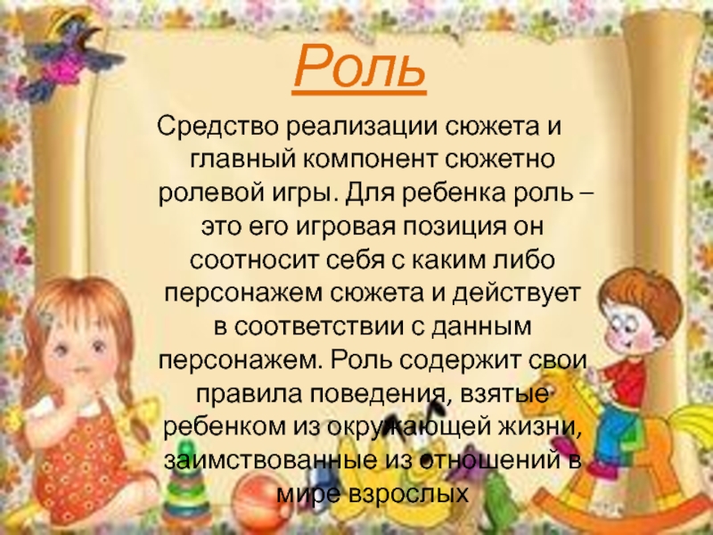 Средство реализации сюжета и главный компонент сюжетно ролевой игры. Для ребенка
