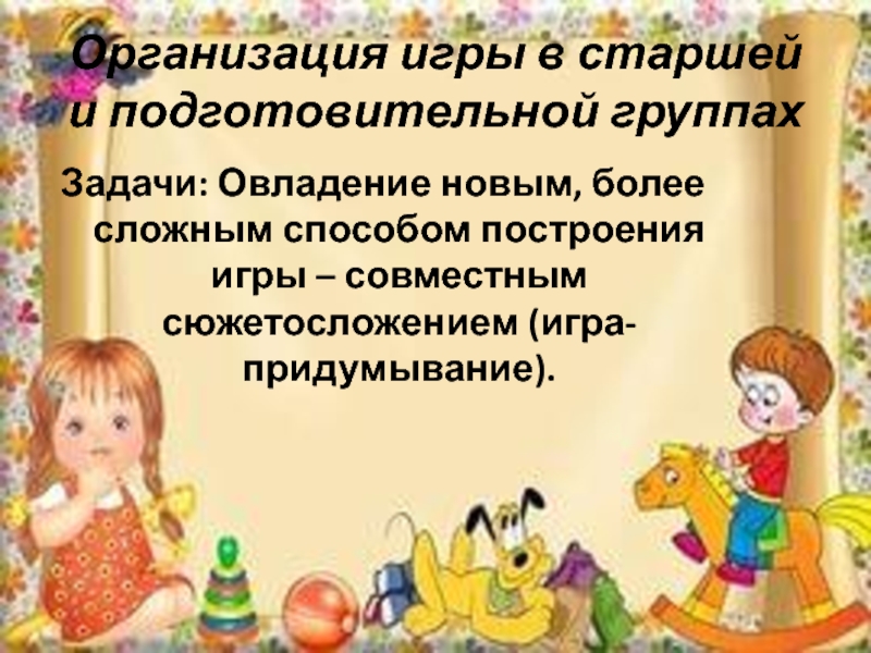 сложным способом построения игры – совместным сюжетосложением (игра-придумывание).