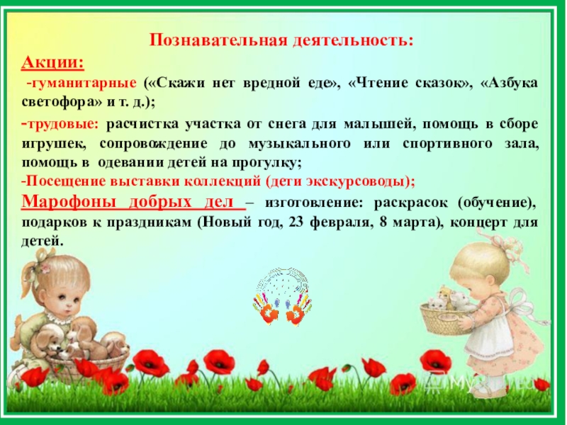 -гуманитарные («Скажи нет вредной еде», «Чтение сказок», «Азбука светофора»