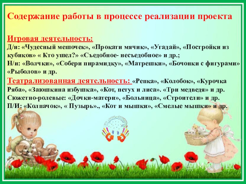 «Угадай», «Постройки из кубиков» « Кто ушел?» «Съедобное- несъедобное» и др.;