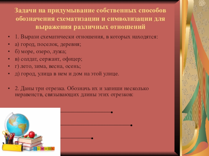 2. Даны три отрезка. Обозначь их и запиши несколько неравенств, связывающих длины этих отрезков: