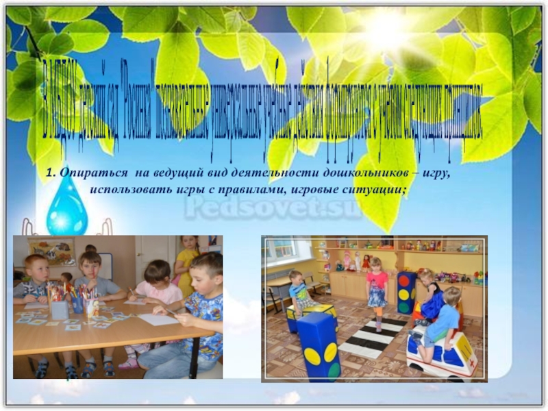 1. Опираться на ведущий вид деятельности дошкольников – игру, использовать игры с правилами, игровые ситуации;