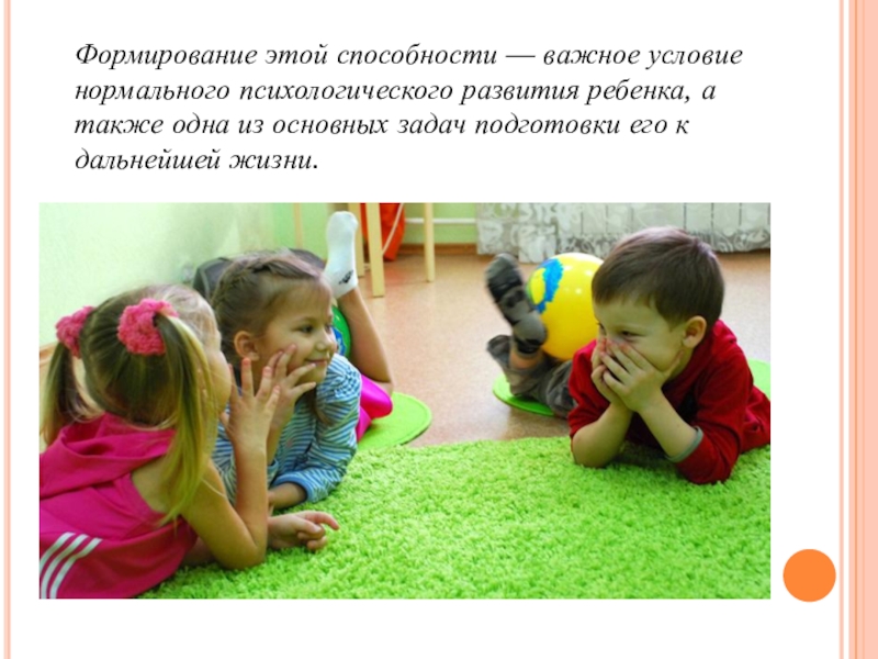 Слайд 3Формирование этой способности — важное условие нормального психологического развития ребенка, а