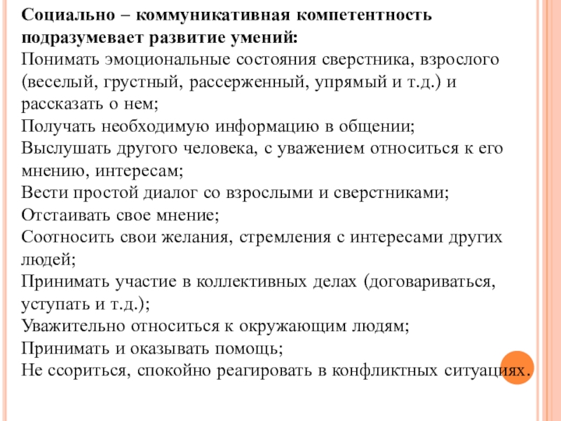 Слайд 6Социально – коммуникативная компетентность подразумевает развитие умений: