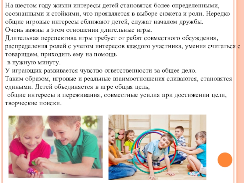 стойкими, что проявляется в выборе сюжета и роли. Нередко общие игровые интересы сближают детей, служат началом дружбы.