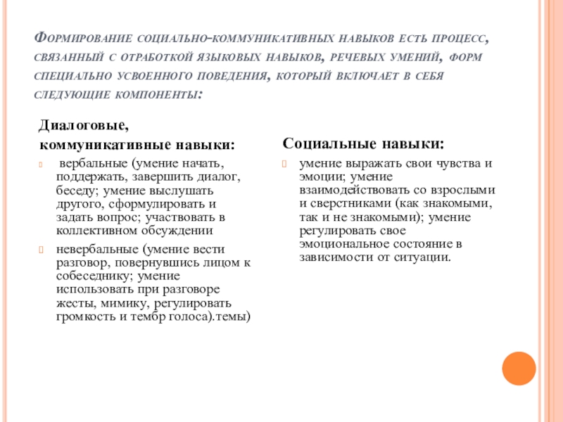 Слайд 4Формирование социально-коммуникативных навыков есть процесс, связанный с отработкой языковых навыков, речевых