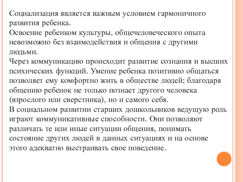 Слайд 5Социализация является важным условием гармоничного развития ребенка.