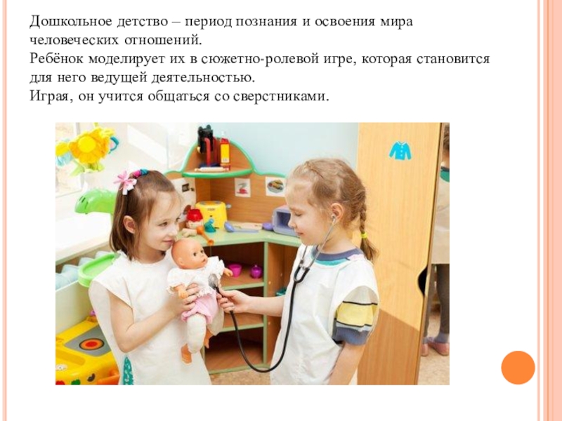 Слайд 12Дошкольное детство – период познания и освоения мира человеческих отношений.