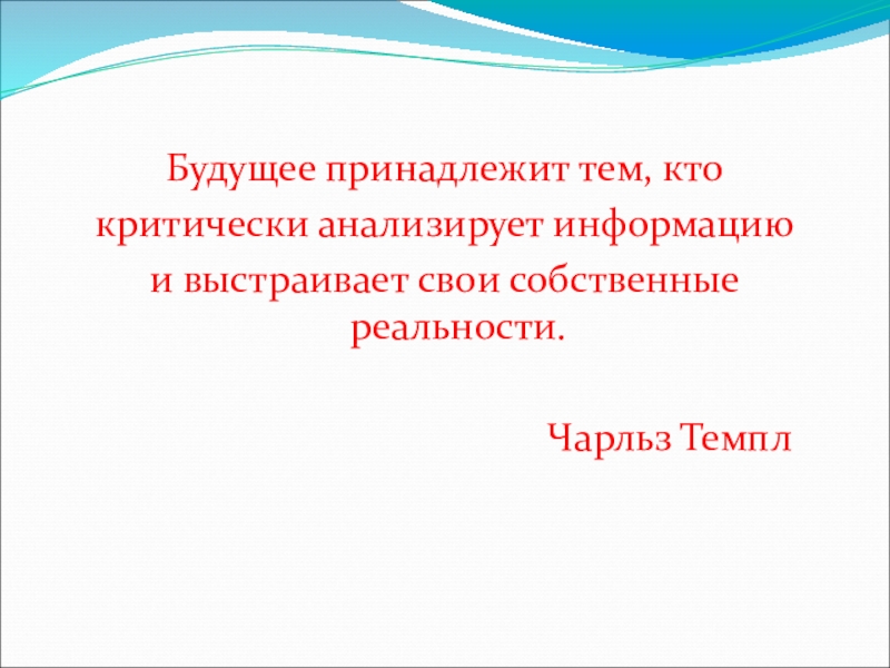 Будущее принадлежит тем, ктокритически анализирует информациюи выстраивает свои собственные реальности.