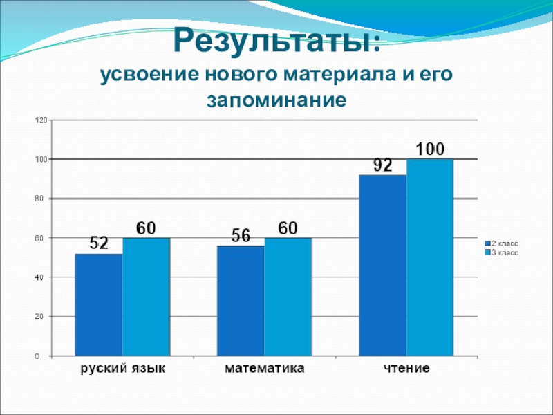 Слайд 12Результаты: усвоение нового материала и его запоминание