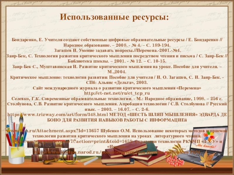 Слайд 44Бондаренко, Е. Учителя создают собственные цифровые образовательные ресурсы / Е. Бондаренко