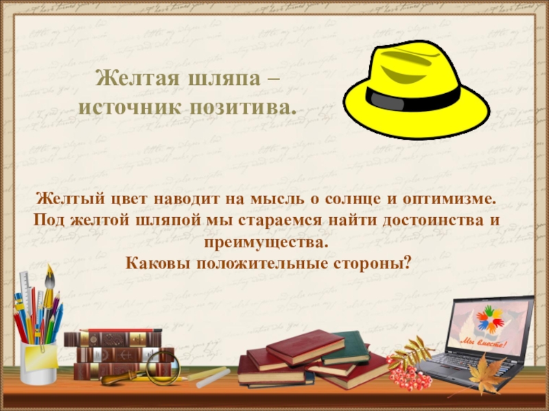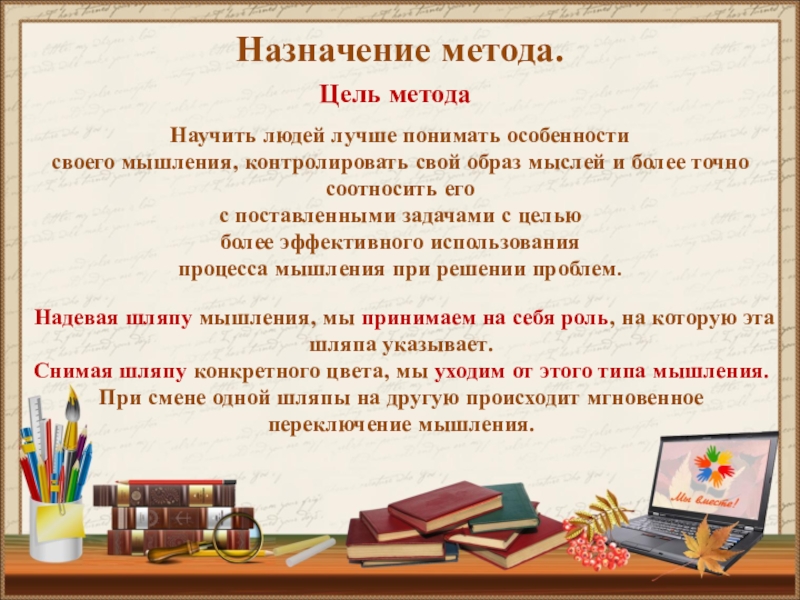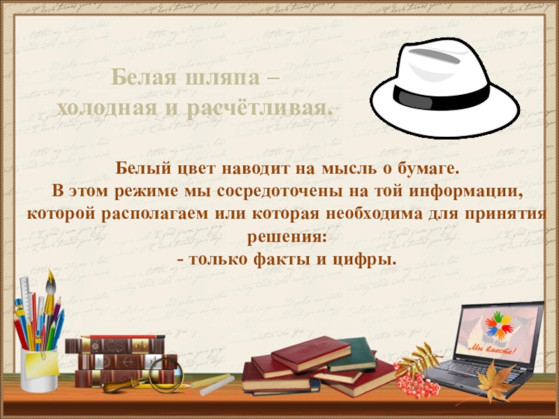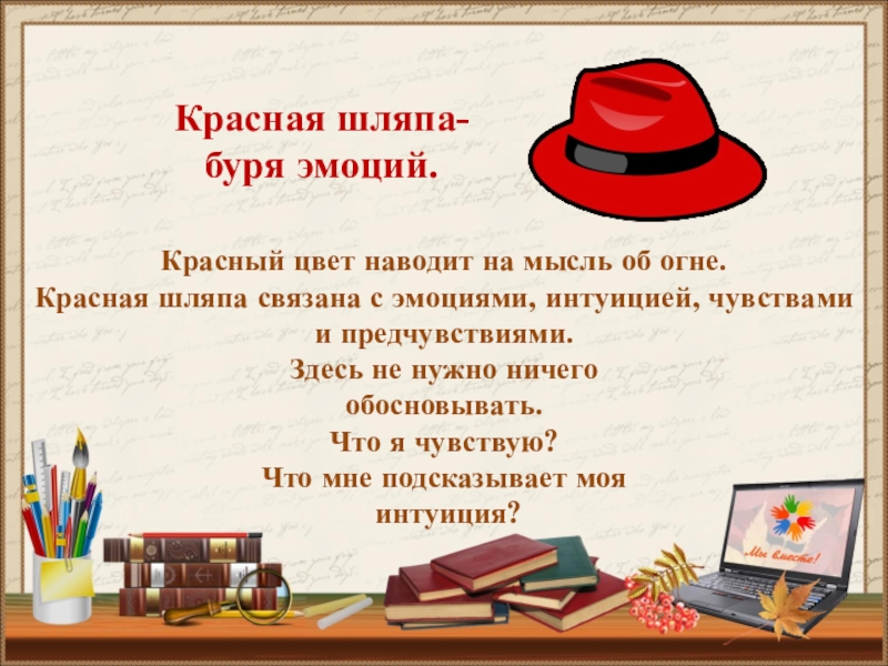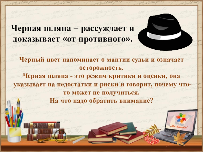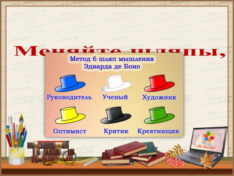 Надевая шляпу мышления, мы принимаем на себя роль, на которую эта шляпа указывает.