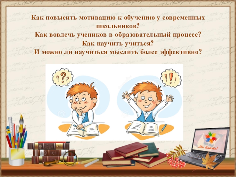 Слайд 3Как повысить мотивацию к обучению у современных школьников?