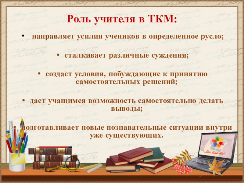 подготавливает новые познавательные ситуации внутри уже существующих.