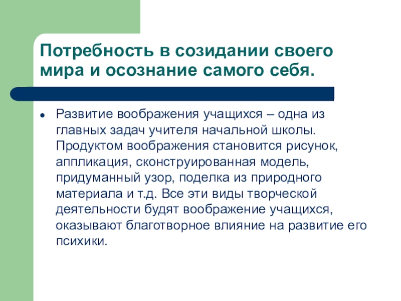 Слайд 10Потребность в созидании своего мира и осознание самого себя.