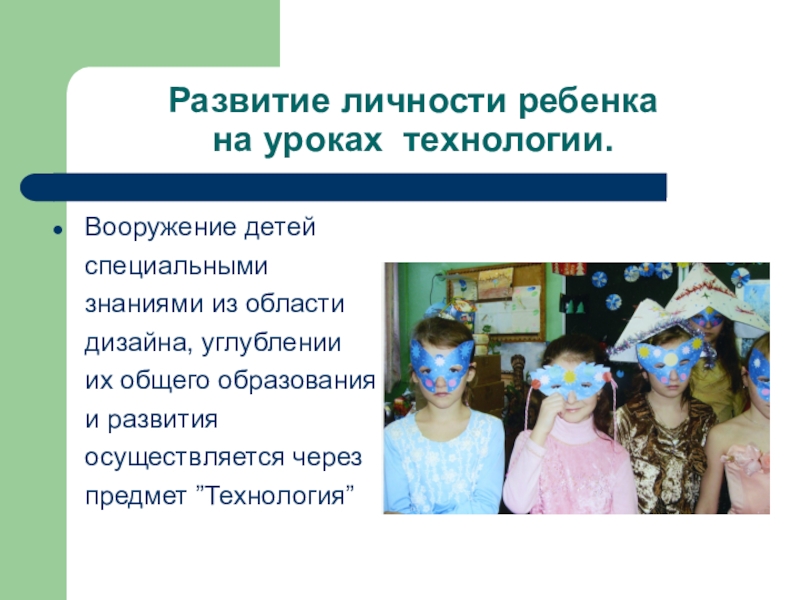 дизайна, углублении их общего образования и развития осуществляется через предмет ”Технология”