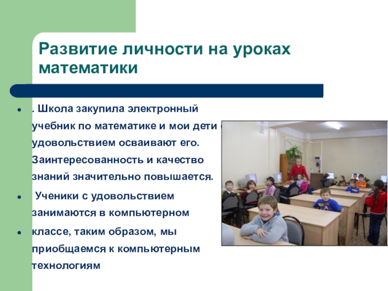 классе, таким образом, мы приобщаемся к компьютерным технологиям