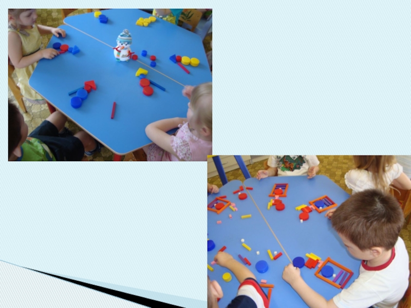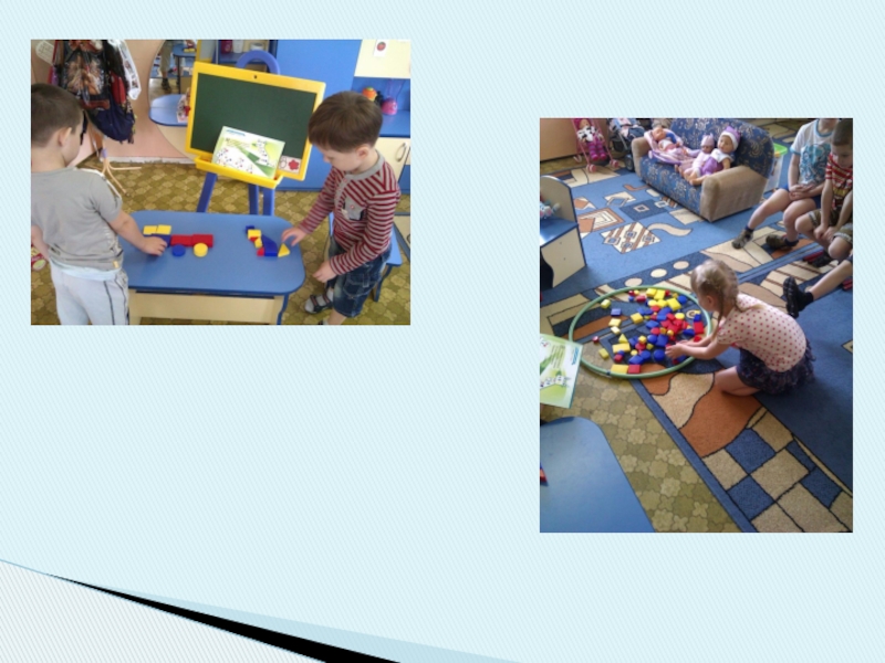 Слайд 10В процессе разнообразных действий с логическими блоками (разбиение, выкладывание по определенным