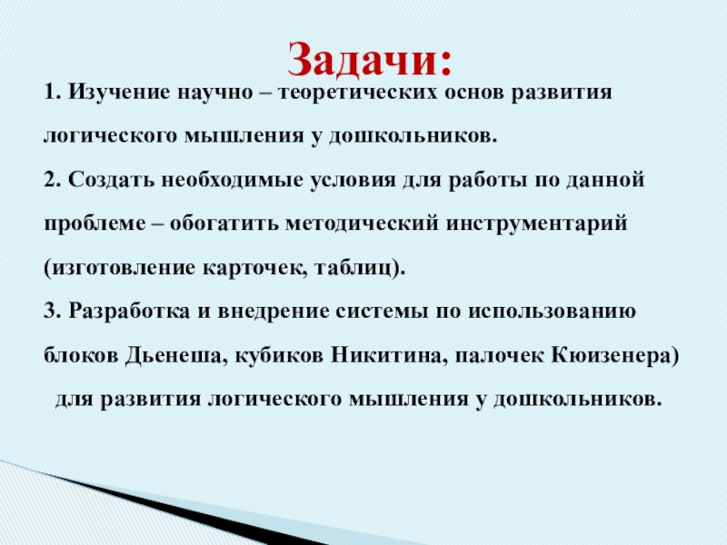 1. Изучение научно – теоретических основ развития логического мышления у дошкольников.