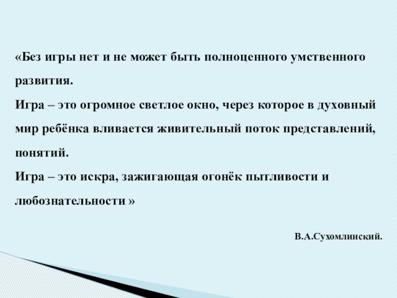 Игра – это искра, зажигающая огонёк пытливости и любознательности »