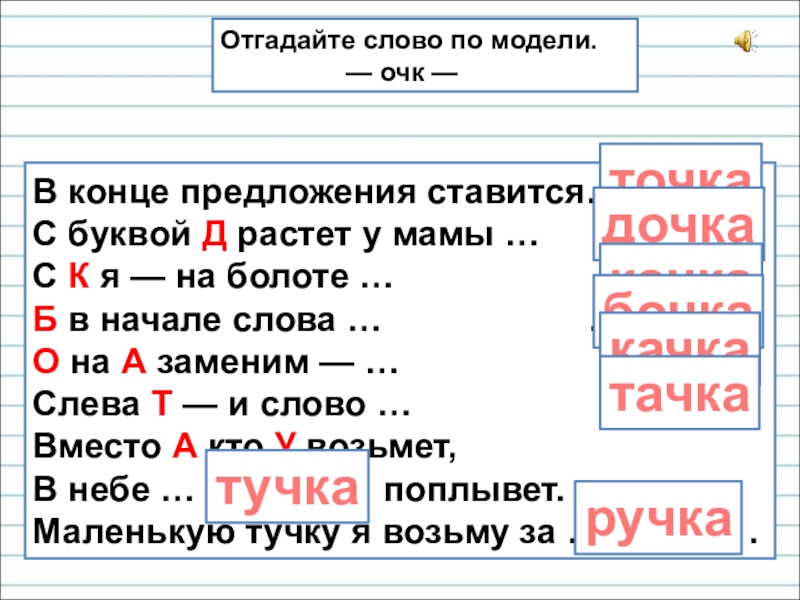 Отгадайте слово по модели.