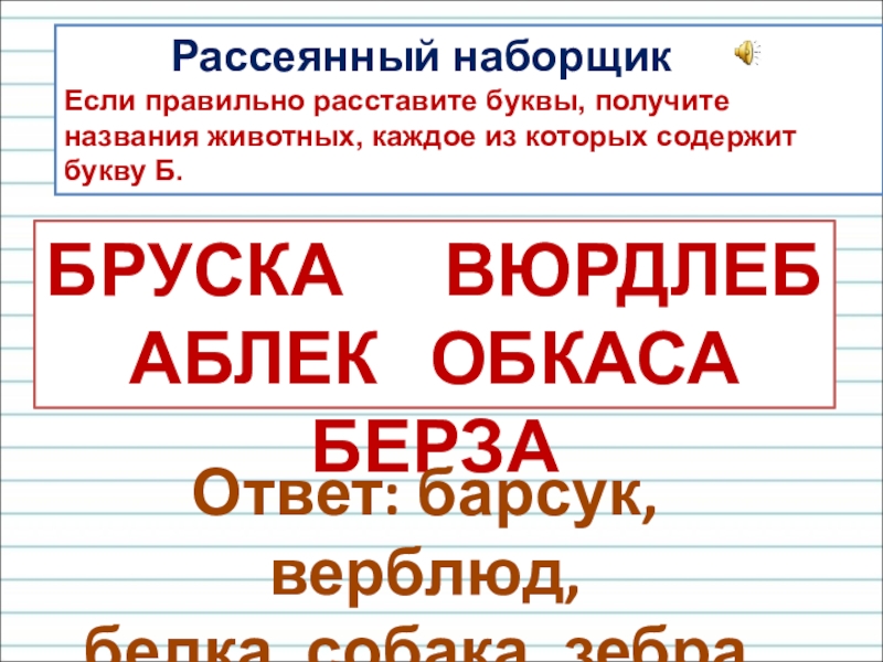 Ответ: барсук, верблюд,