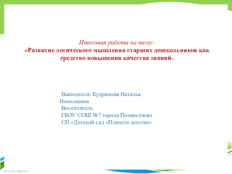 - консультации «Развитие логического мышления»; - приглашение родителей на деловую игру «Путешествие в страну логических игр».