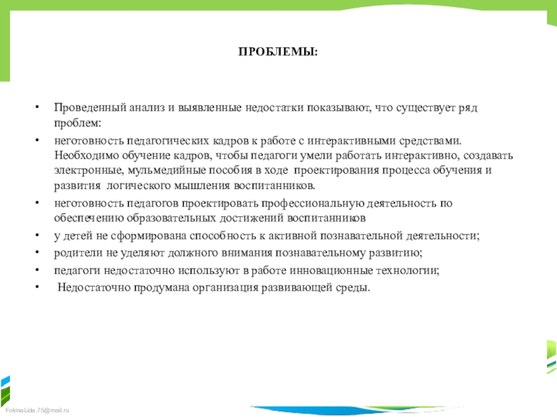 - не готовность педагогов в работе с интерактивными, мультимедийными средствами