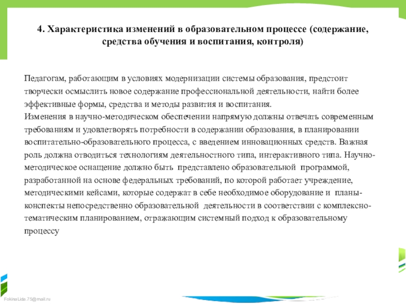 4. Характеристика изменений в образовательном процессе (содержание, средства обучения и воспитания,