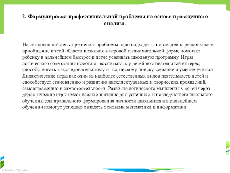 2. Формулировка профессиональной проблемы на основе проведенного анализа.