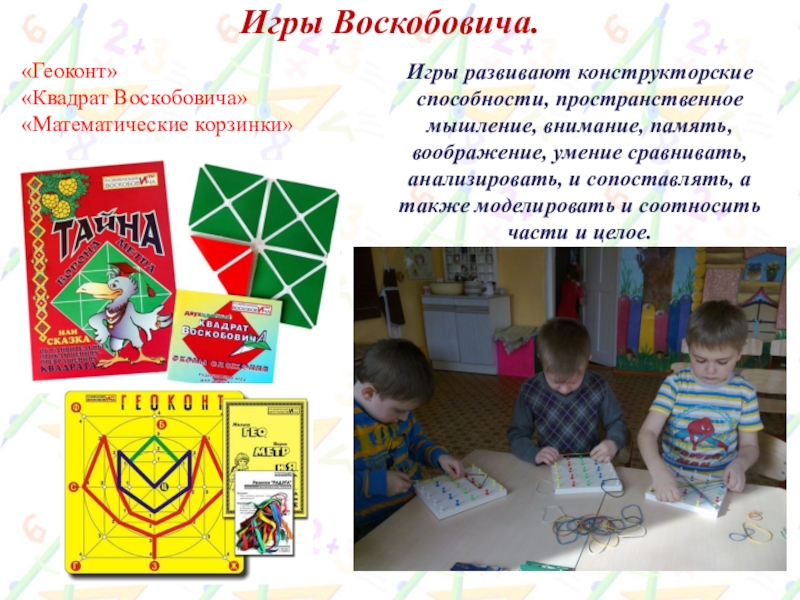 Игры развивают конструкторские способности, пространственное мышление, внимание, память,