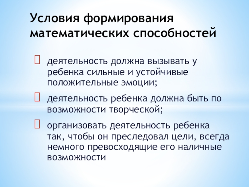 Условия формирования математических способностей