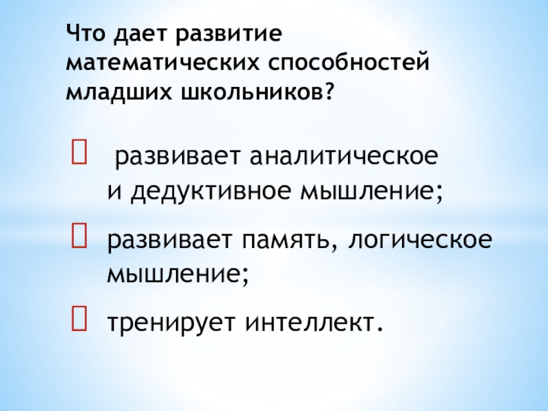 Развитие математических способностей младших школьников