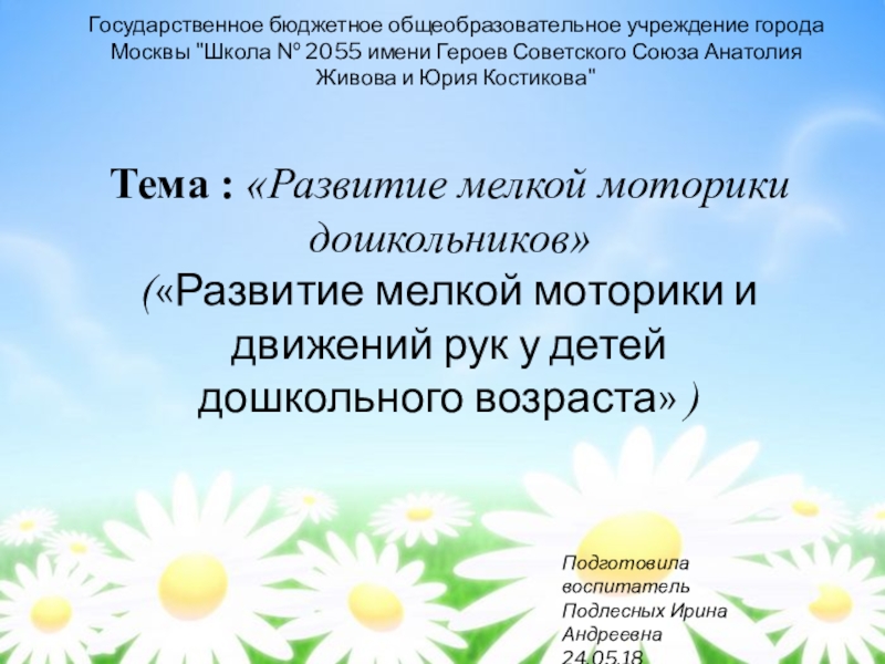 Государственное бюджетное общеобразовательное учреждение города Москвы "Школа № 2055 имени Героев Советского Союза Анатолия Живова и Юрия Костикова"
