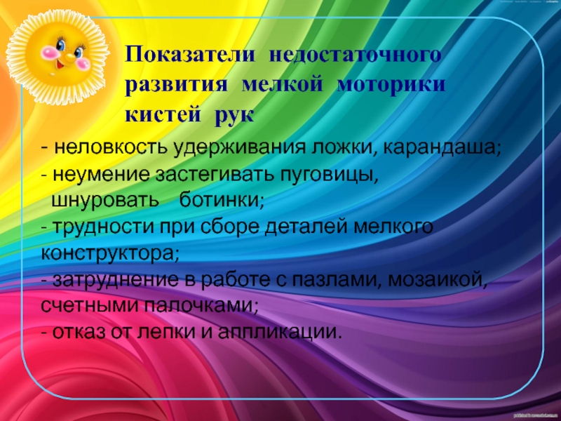 Успешность работы по развитию мелкой моторики зависит от систематичности и регулярности. Важно не допускать скуки и переутомления, строить работу так, чтобы такие занятия приносили детям радость.
