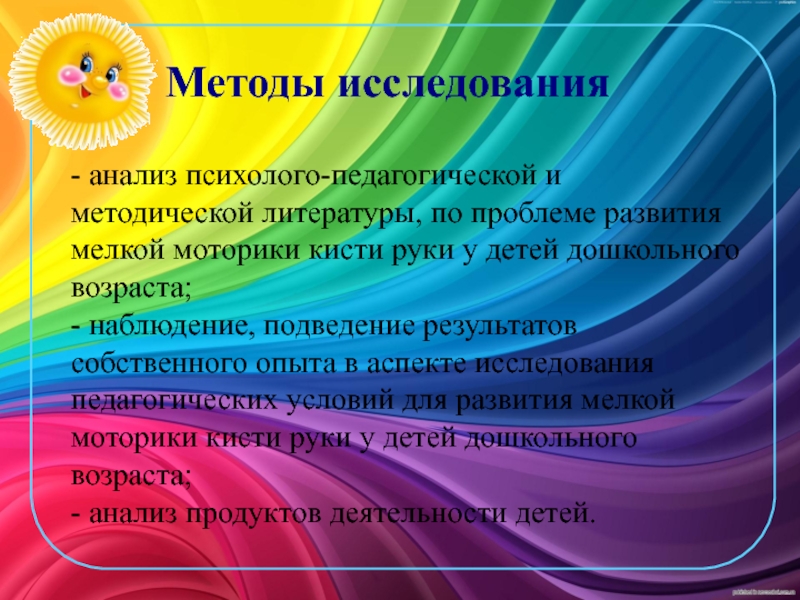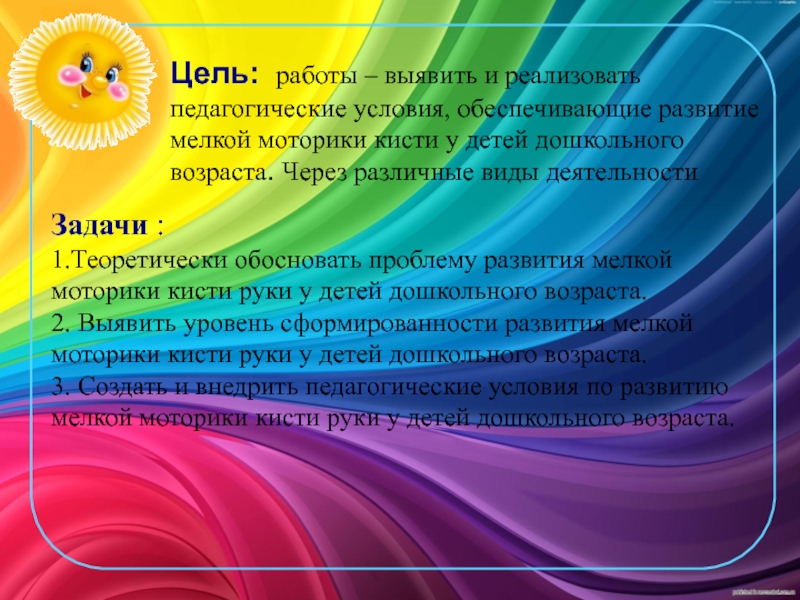 1.Теоретически обосновать проблему развития мелкой моторики кисти руки у детей дошкольного возраста.