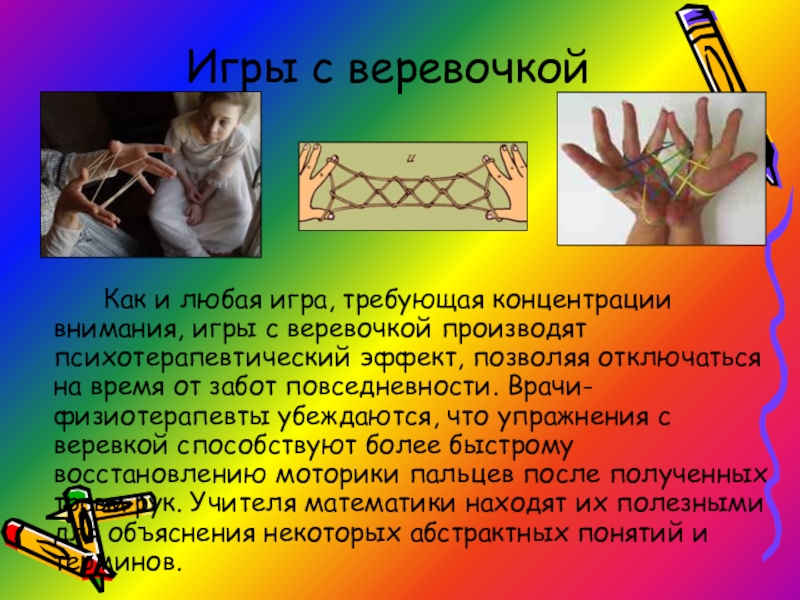 Слайд 25Игры с веревочкой