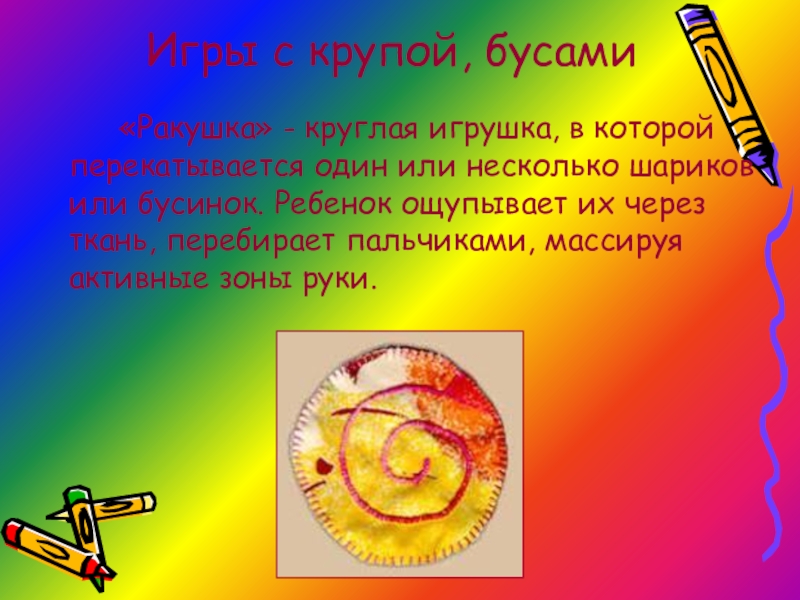 Слайд 16Игры с крупой, бусами