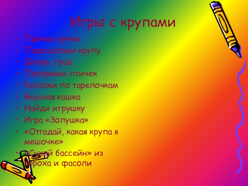 Слайд 18Игры с крупами