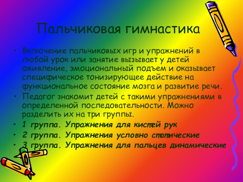 Включение пальчиковых игр и упражнений в любой урок или занятие