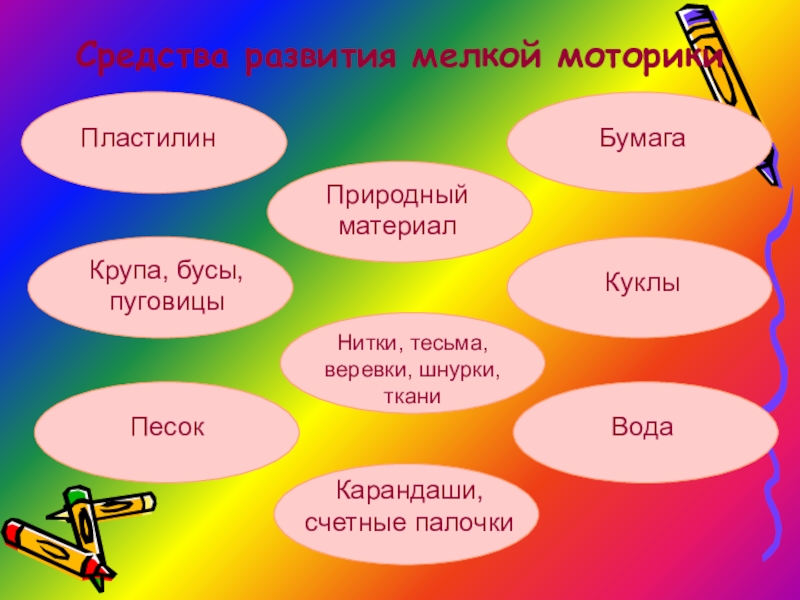 Слайд 6Средства развития мелкой моторики