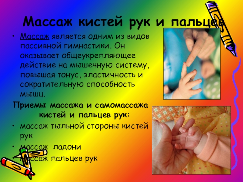 Приемы массажа и самомассажа кистей и пальцев рук: