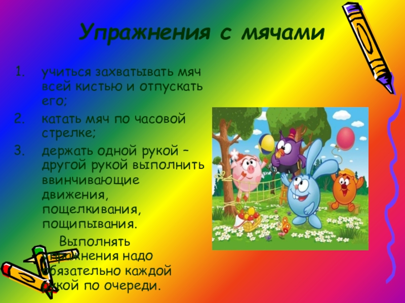 Слайд 37Упражнения с мячами